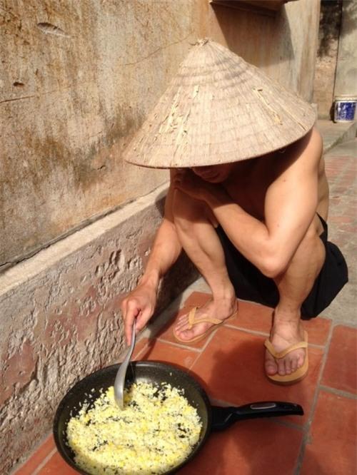 Nếu như người dân đã khá quen thuộc với thí nghiệm rán trứng giữa trời nóng thì hình ảnh một chàng trai đội nón, rang cơm bằng cái nóng gần 40 độ C của thời tiết cũng khiến nhiều người cảm thấy ngạc nhiên, hài hước.