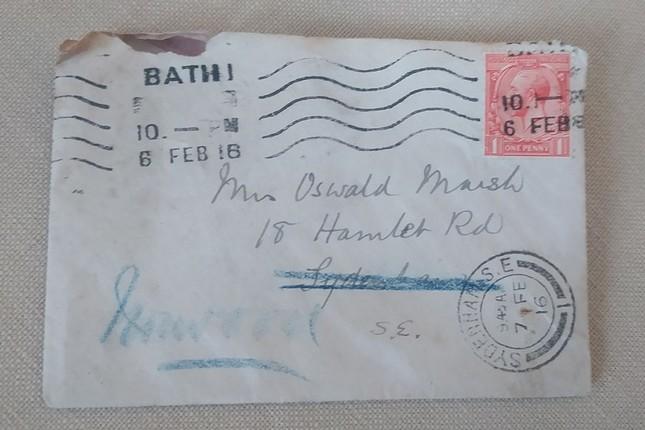 Dựa vào dấu bưu điện, lá thư này được gửi vào tháng 2 năm 1916, từ thành phố Bath, Anh đến một địa chỉ ở đường Hamlet, phía Nam Luân Đôn.