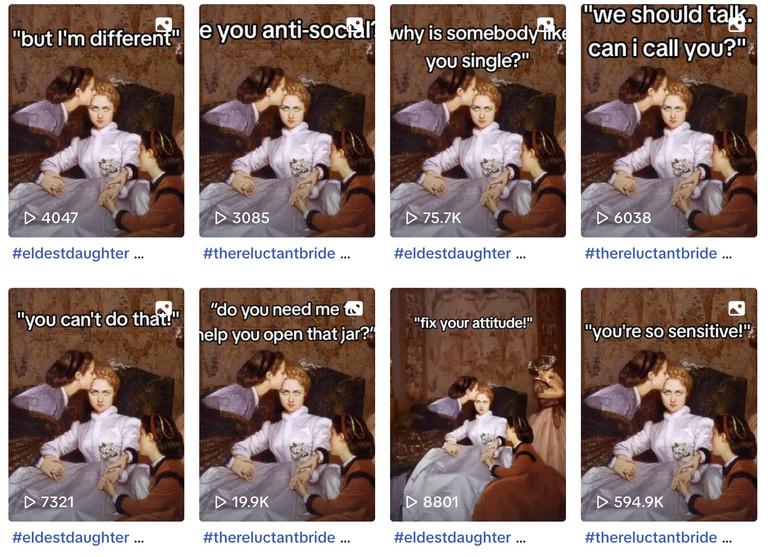 Hàng loạt video dựa trên hình ảnh của ‘La Fiancée Hésitante’ lan truyền trên TikTok. Ảnh chụp màn hình.