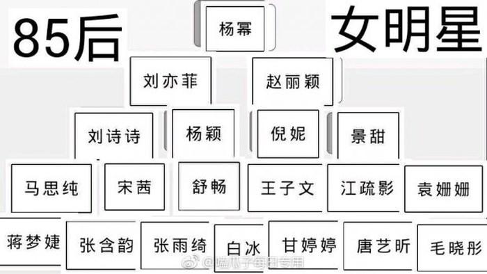 Trang Thố Khu vừa tung ra bảng xếp hạng vị trí các tiểu sinh và tiểu hoa Trung Quốc sinh sau năm 1985 và sau năm 1990 hiện tại. Nhiều cái tên quen thuộc và được yêu thích xuất hiện trong BXH này.