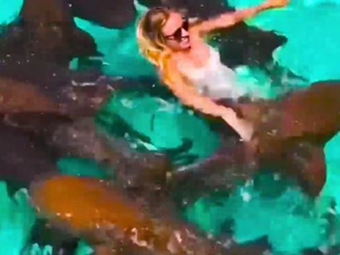 Du khách vừa vui vừa sợ khi bơi giữa đàn cá mập