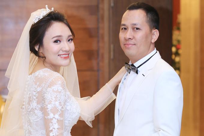 Nhật Thủy và ông xã Ngô Quỳnh trong lễ cưới hồi tháng 11/2017.