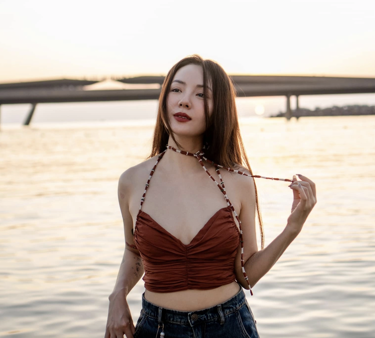 Phương Linh diện bộ trang phục trẻ trung trong chuyến đi biển mới đây. Mặc áo hai dây crop top phối cùng chân váy jeans, nữ ca sĩ được khen trông như các cô gái Gen Z.