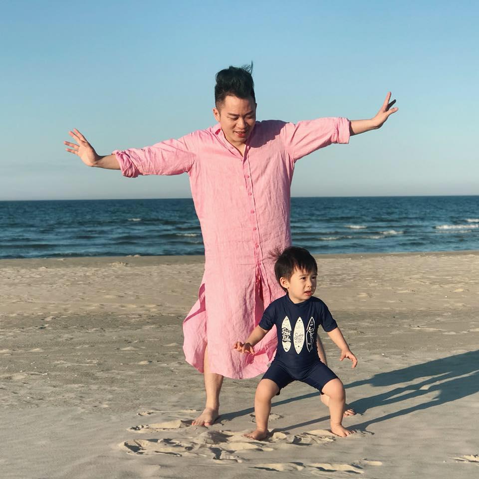 Bé Voi vui đùa cùng bố khi gia đình đi du lịch