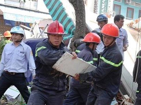 Khu vực đông đúc người đi bộ nằm ngay kế bên toà nhà bị phá huỷ.