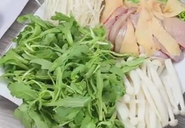 Bước 7: Cho thịt gà chặt miếng vừa ăn cùng rau vào và thưởng thức