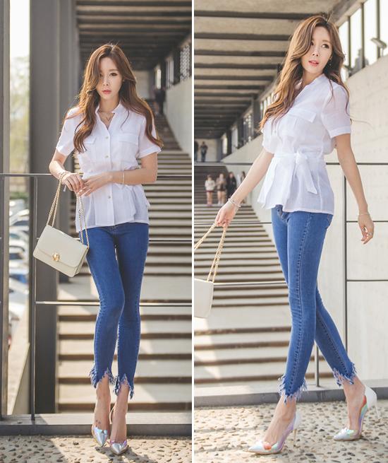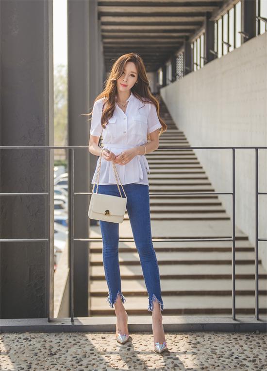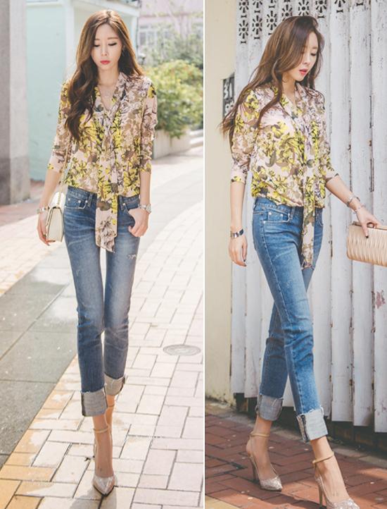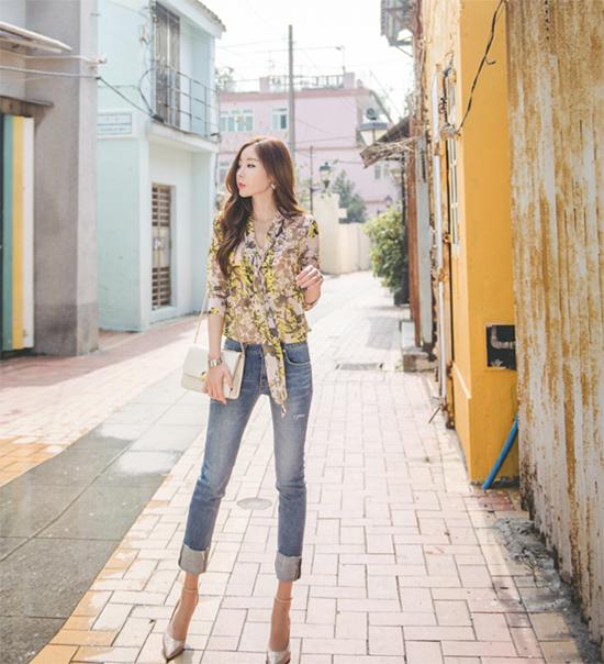 Quần jeans và áo sơ mi khi kết hợp lại sẽ khiến người mặc vừa trẻ trung, cá tính lại hiện đại. Một cô nàng phá cách có thể khoác lên mình những chiếc quần jeans rách gấu, xắn gấu đến công sở. Ngoài ra, áo sơ mi trễ vai, thắt nơ trước hay áo dáng peplum là những mẫu sành điệu cho bạn mix cùng.