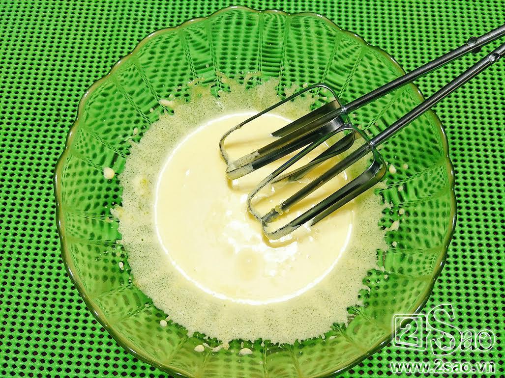Bước 1: Bạn cho lòng đỏ trứng gà vào 1 cái tô, thêm đường và đánh cho trứng chuyển sang màu vàng nhạt sau đó để sang 1 bên.