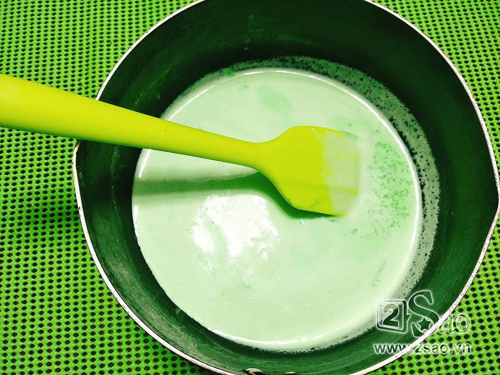 Bước 4: Đổ cốm vừa xay vào nồi, bật bếp vừa nấu vừa khuấy đến khi sôi thì tắt bếp.