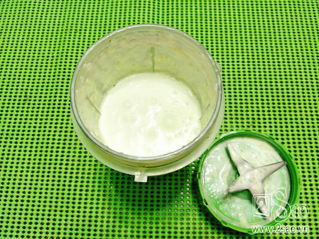 Bước 3: Đổ cốm ra để ráo nước sau đó bạn lấy 1 nửa số lượng cốm cho vào máy xay sinh tố, thêm sữa tươi và xay cho cốm nhuyễn là được.