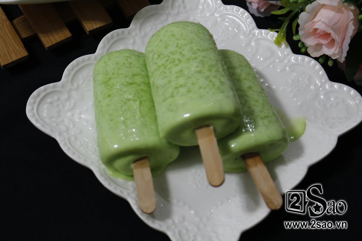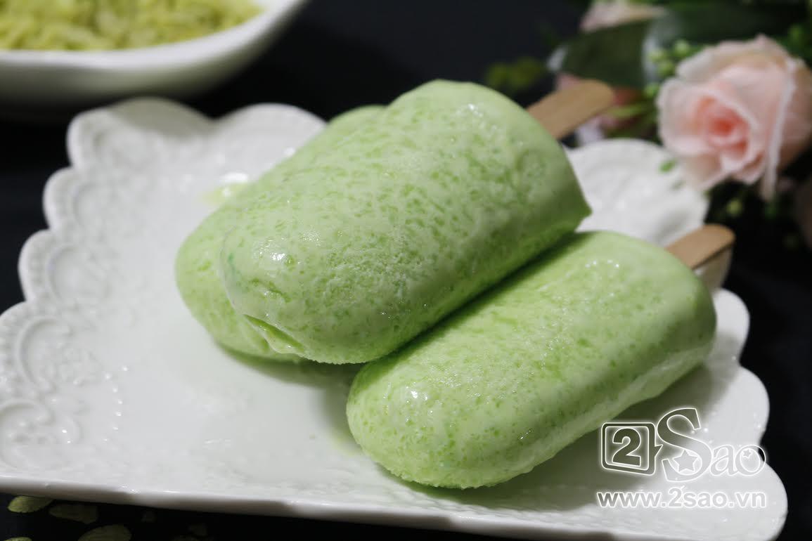 Bước 7: Để cho hỗn hợp kem cốm nguội bớt sau đó múc kem cốm rót vào khuôn kem, cắm que kem và đem cất ngăn đá tủ lạnh 6-8 tiếng hoặc qua đêm cho kem đông lại, khi ăn bạn lấy kem cốm ra khỏi khuôn để thưởng thức.