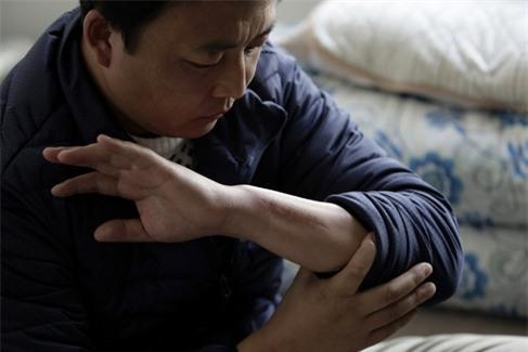 Ông Zhang và cánh tay đầu sẹo. (ảnh Bloomberg)