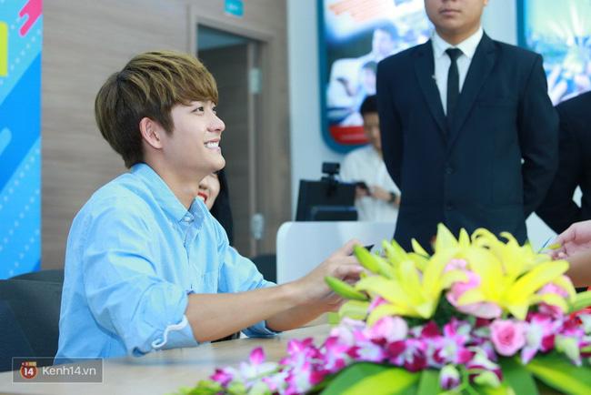 Trong buổi giao lưu chiều 27/8 tại Hà Nội, Kang Tae Oh không chỉ giao lưu mà còn kí tặng cho các fan may mắn. Nam diễn viên, ca sĩ tỏ ra rất chiều chuộng các fan của mình. Kang Tae Oh có rất nhiều biểu cảm đáng yêu, thoải mái ôm các fan. Thậm chí có fan may mắn còn được hôn má Kang Tae Oh và anh chàng cười tít mắt.