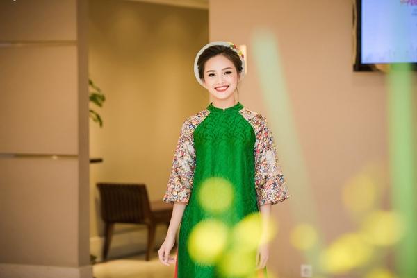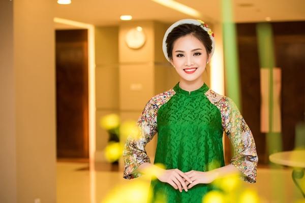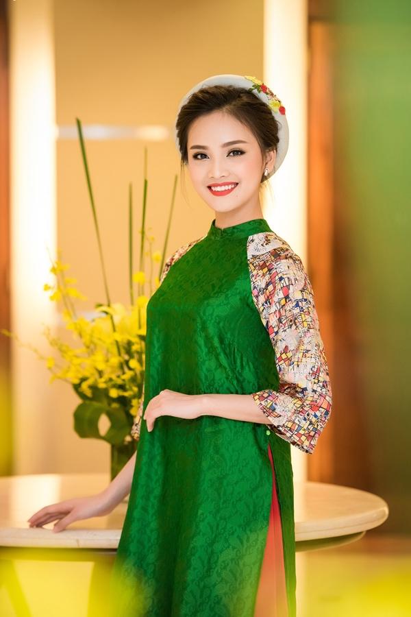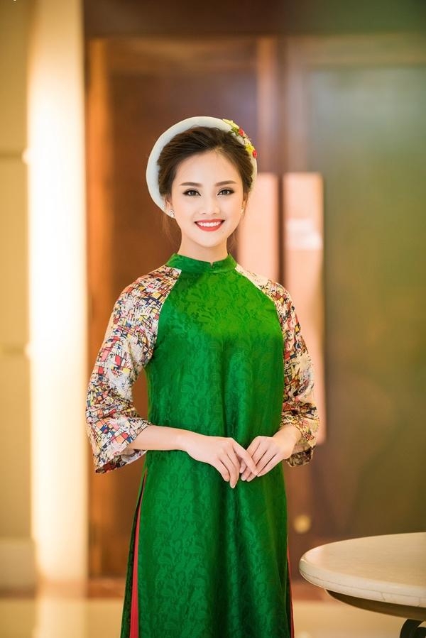 Trong khi đó, người đẹp Thái Nguyên Tố Như lại lựa chọn trang phục áo dài cách điệu, kết hợp cùng mấn đội đầu.