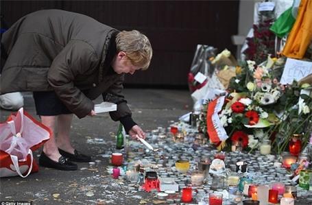Hoa và nến đã được đặt trên lề đường ở gần nhà hát Bataclan để tưởng niệm các nạn nhân sau vụ xả súng đẫm máu.