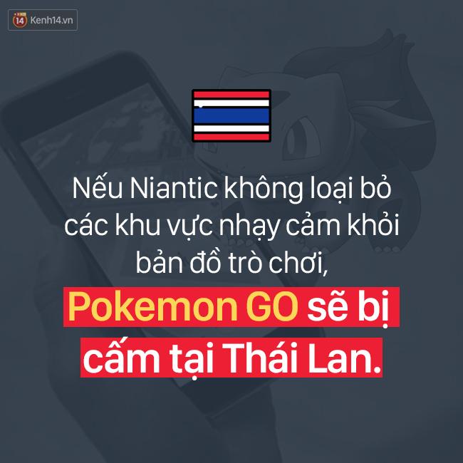 Ông Thakorn Tanthasith, tổng thư ký Ủy ban Viễn thông và Truyền hình Quốc gia Thái Lan (NBTC), cho biết đã yêu cầu Niantic, công ty phát triển game Pokemon GO, loại bỏ Pokemon ở những khu vực gồm: Các tòa nhà chính phủ, các khu vực tôn giáo, các khu vực thuộc sở hữu cá nhân hay những khu vực nguy hiểm như đường xá, kênh rạch.