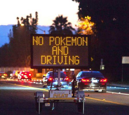 Các biển cấm chơi Pokemon khi đang lái xe đã được dựng lên ở nhiều khu vực.