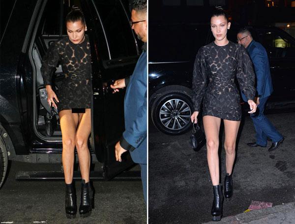 Mặc váy siêu ngắn, người mẫu Bella Hadid không tránh khỏi lộ nội y khi bước xuống xe
