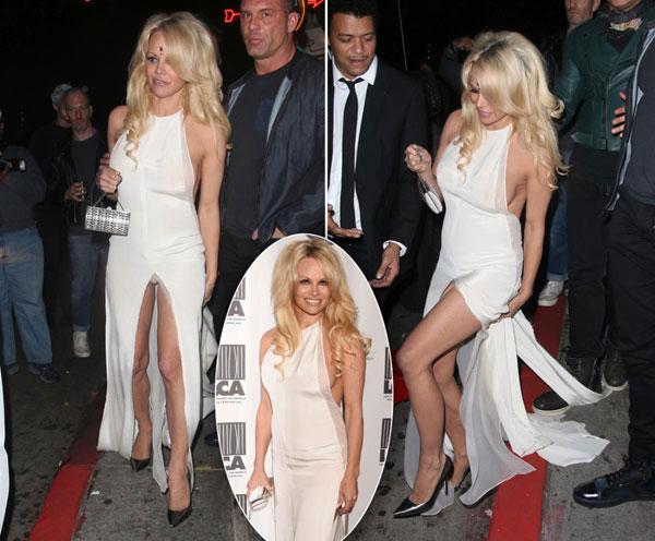 Nữ diễn viên Pamela Anderson mặc bộ đầm hở hang tới dự tiệc từ thiện ở khách sạn