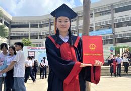 Phạm Thị Vân Anh, học sinh trường THPT Nguyễn Bỉnh Khiêm (Hải Phòng) trở thành thủ khoa toàn quốc khối D01 năm nay với tổng điểm 28,9. Vân Anh trúng tuyển vào ngành Kinh tế Đối ngoại của trường Đại học Ngoại thương bằng hình thức xét tuyển học bạ. Em quyết định theo đuổi lĩnh vực này chứ không rẽ hướng sang ngành học khác.