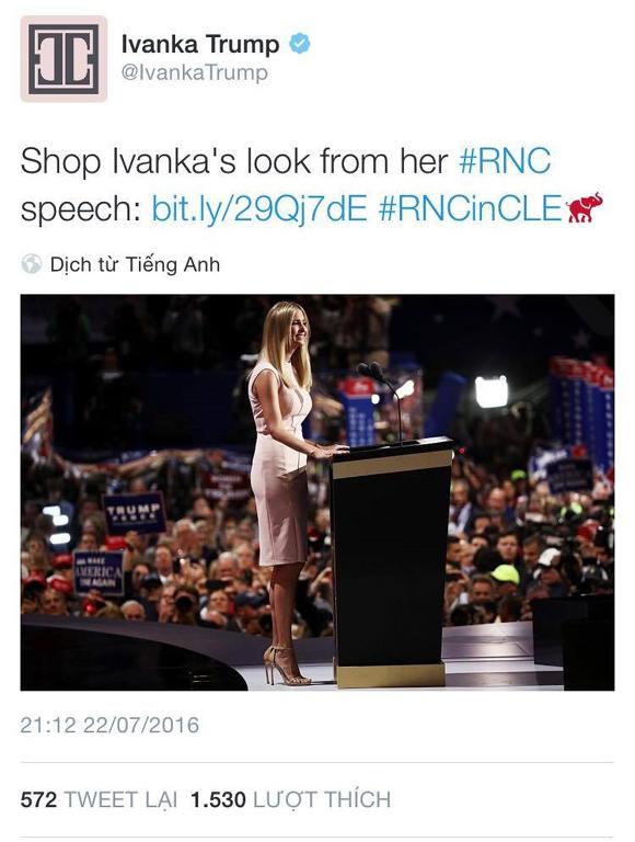 nó được Ivanka mặc trong lễ phát biểu tại hội nghị Đảng Cộng hòa khi mà bài