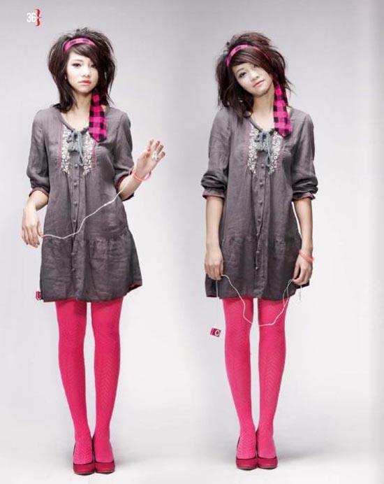 thể hiện mình là một cô nàng cá tính hợp mốt. Quần bó màu mè mặc với váy