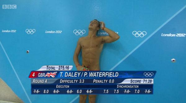 Khoảnh khắc 'khó đỡ' của thần đồng nhảy cầu Anh, Tom Daley tại Olympic London 2012.