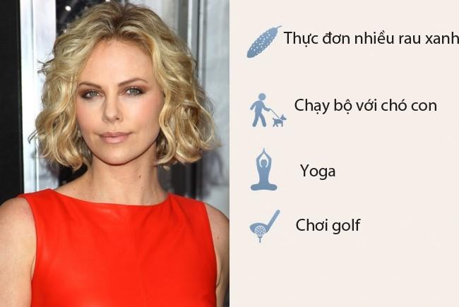 Charlize Theron, 40 tuổi, trẻ trung nhờ chế độ nhiều rau xanh.