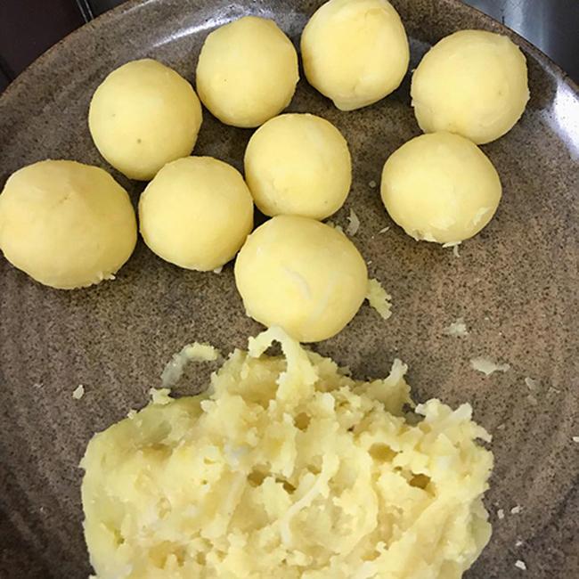 Lưu ý: Ngoài cách nặn bánh gấc hình tròn, bạn có thể nặn thành hình vuông, hình con vật tùy thích.