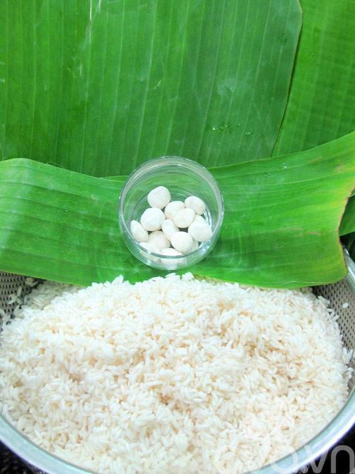 - Xếp viên cơm nếp vào thố thành từng lớp.