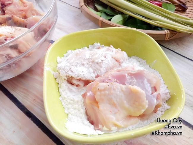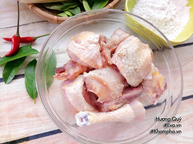 Bước 1: Gà ta sau khi mua về làm sạch, chặt miếng vừa ăn. Ướp gà ta với chút hạt tiêu sau đó bọc màng thực phẩm để khoảng 10 phút trong ngăn mát tủ lạnh.