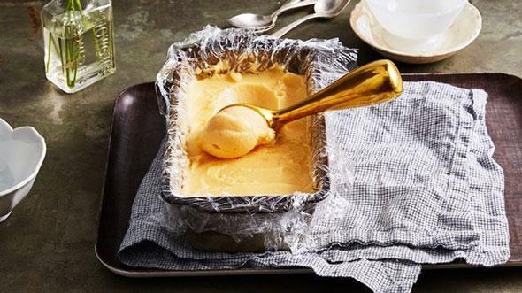 4. Cho tiếp những viên buttermilk vào máy xay cùng với đào. Xay tới khi hỗn hợp mịn. Nếm và cho thêm đường hoặc mứt nếu cần. Có thể thưởng thức kem ngay lập tức hay cho vào hộp đưa vào ngăn đá để dành. Nếu để trong tủ lạnh lâu, nên để ra ngoài khoảng 10-20 phút trước khi dùng.