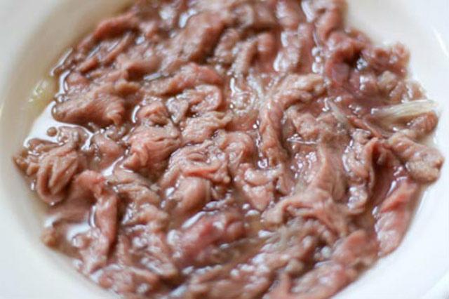 - Bước 2: Cho thịt bò vào bát nước cốt chanh đã vắt, lấy đũa trộn đều cho chanh ngấm vào thịt bò. Sau 3 tiếng thịt bò sẽ chín, cứ 1 tiếng lại đảo thịt bò 1 lần cho chanh ngấm đều vào thịt bò. Đến khi thịt bò hết đỏ, chín tái là được.