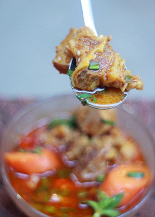 Thịt bò mềm, dai sần sật nhờ phần gân. Mùi thơm của gừng, tỏi, tạo nên một hương vị hấp dẫn không thể lẫn với các món ăn khác.