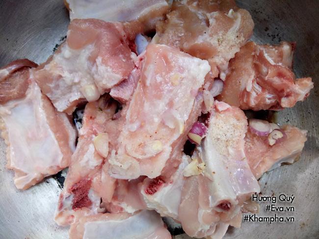 Bước 2: Sườn rửa sạch rồi chặt miếng vừa ăn, ướp sườn non với 1 thìa bột nêm, 1 ít hành khô băm nhỏ.