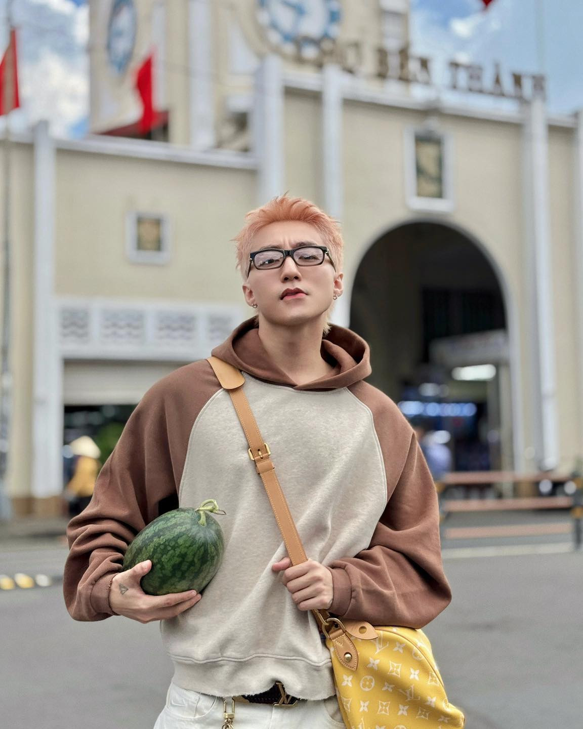 Không chỉ gây chú ý với diện mạo bảnh trai mà màn lên đồ của giọng ca gốc Thái Bình lần nào cũng khiến cư dân mạng sục sôi. Lần này, Sơn Tùng đeo túi Louis Vuitton màu vàng nổi bật mang đựng hoa quả mới mua. Đúng là cách người giàu dùng hàng hiệu cũng khác biệt với người thường.