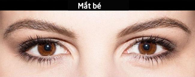 Để mắt bé trông to hơn, bạn nên bôi một ít phấn mắt màu nâu sẫm lên phần mí mắt và cả phần nếp gấp của mắt. Ở góc ngoài của mắt, bôi phấn mắt rộng hơn. Tiếp theo, vẽ một đường dọc theo viền mí mắt, sử dụng bút chì màu đen. Dùng đầu ngón tay tán đều phần chì kẻ viền mí này và giao với phần phấn mắt.