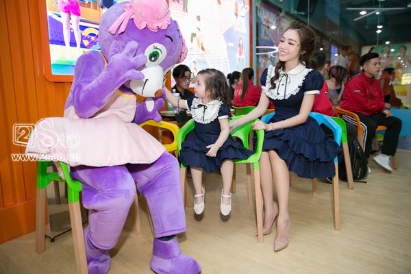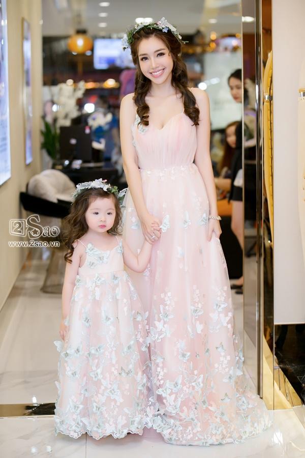 Sau đó, Elly Trần dẫn con vào phòng trang điểm và thay trang phục. Cả hai xuất hiện lại trước các quan khách trong phong cách xinh yêu như thiên thần.