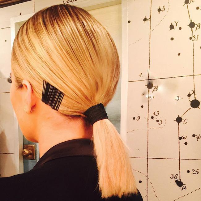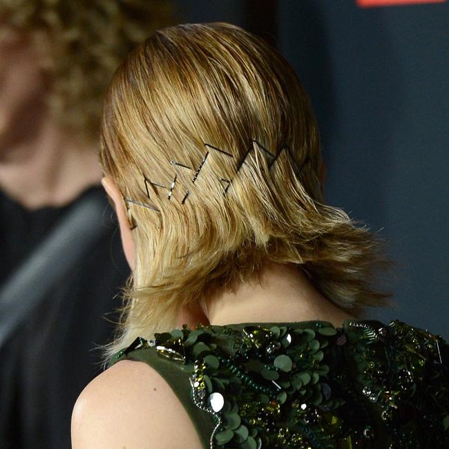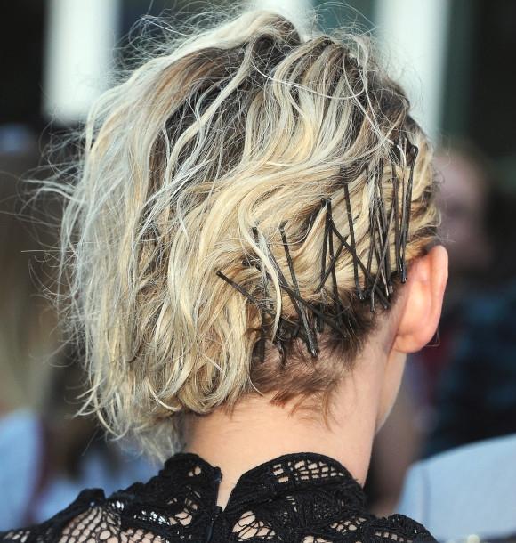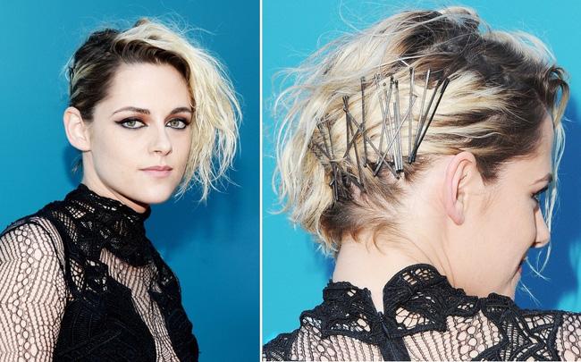Mái tóc đặc biệt với điểm nhấn là hàng chục chiếc cặp tăm của Kristen Stewart.