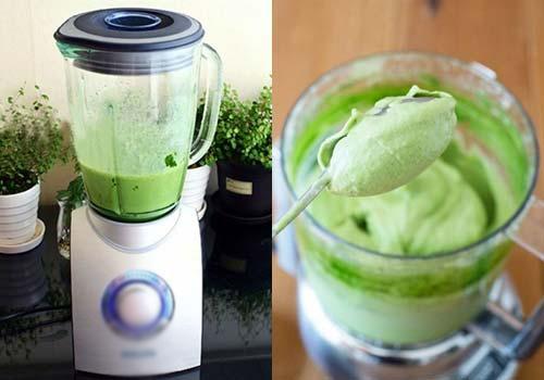 - Cuối cùng đổ toàn bộ phần chuối xay nhuyễn vào khay đá rồi dùng màng nilon bọc thực phẩm trùm kín và bảo quản trong ngăn đá của tủ lạnh để dùng dần.