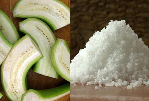 - Mỗi ngày bạn lấy 5 viên đá chuối xanh, hòa tan với chút nước lọc.