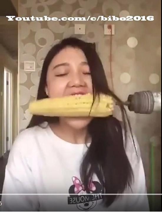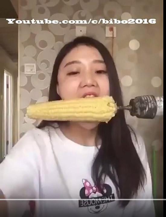 Cô gái ăn ngô bằng máy khoan và cái kết … hói đầu.