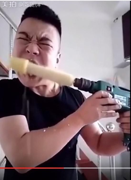 Gần đây, trong giới trẻ Trung Quốc đang rộ lên trào lưu ăn ngô bằng máy khoan khiến nhiều người không khỏi rợn người trước trò đùa mạo hiểm này. Cụ thể, bắp ngô sẽ được gắn vào mũi khoan sau đó để ở chế độ bật rồi đưa bắp ngô vào miệng, cứ thế là dùng răng để đánh bật những hạt ngô ra khỏi lõi.