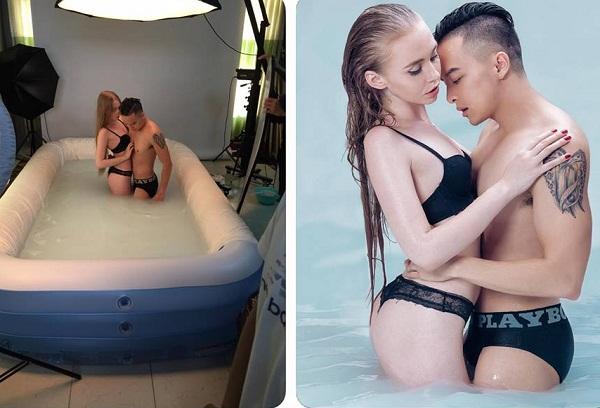Khả năng photoshop vi diệu đã hô biến "cặp đôi" từ bể tắm hơi sang biển khơi xanh biếc.