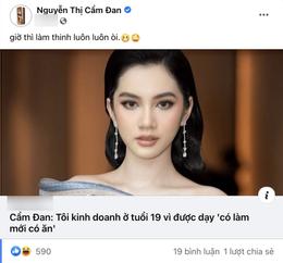 Mới đây, trên trang cá nhân, Cẩm Đan gây chú ý với bài phỏng vấn chia sẻ về sự nghiệp hiện tại. Chân dài gốc An Giang thẳng thắn chia sẻ quan điểm: “Tôi kinh doanh ở tuổi 19 vì được dạy 'có làm mới có ăn'".