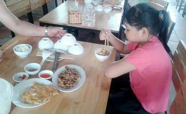 “Sáng đang đứng ngoài nhà nghỉ chơi thấy một chú trung tuổi tay dắt đứa bé gái tầm lớp 3 tay kia xách túi đựng mấy gói mì tôm với bó rau cải lại hỏi.