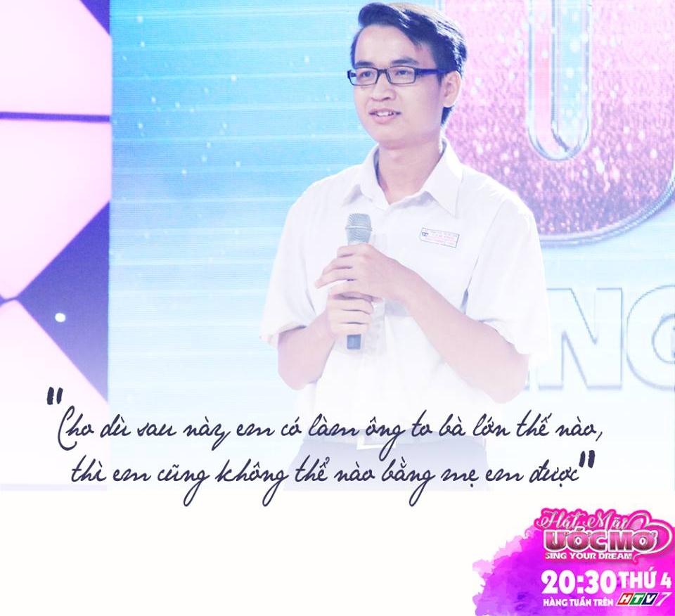 Cuối cùng là câu chuyện về lòng hiếu thảo của cậu học sinh 17 tuổi Đỗ Bình Phương. Cậu tham gia Hát mãi ước mơ là để bày tỏ tình yêu, sự cảm phục - ngưỡng mộ với mẹ mình là cô Đỗ Hồng Hà.