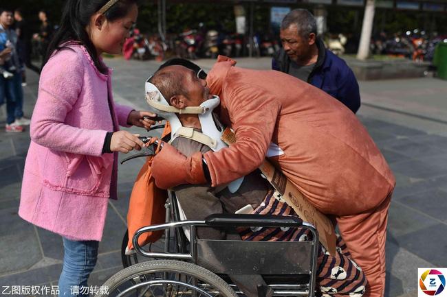 Một cụ già ngồi xe lăn giúp đỡ anh.