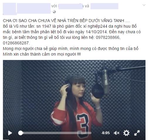 Theo thông tin mà nickname N.P chia sẻ bố cô là ông Vũ Như Tần, sinh năm 1947, bị mắc bệnh tâm thần phân liệt và đã bỏ nhà đi từ ngày 14/10/2014, đến nay vẫn không có tin tức gì.