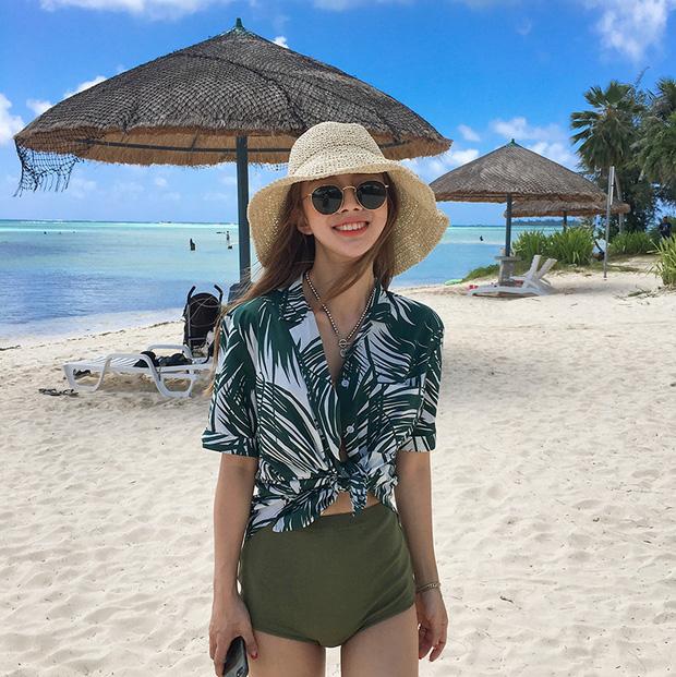 Áo sơmi và đồ bơi tưởng chẳng liên quan đến nhau mà đôi khi lại là "cặp bài trùng" đấy các nàng ơi. Nếu trong tủ của bạn có một chiếc áo sơmi cộc tay với họa tiết bắt mắt mà bạn chưa biết diện thế nào cho đỡ "ngố", hãy tận dụng ngay làm đồ cover-up. Bạn có thể khoác hờ hững hoặc buộc 2 vạt lại với nhau để tạo thành crop top như phong cách của thập niên 90 đều trông rất xinh xắn. Ngoài áo sơmi cộc tay, sơmi dáng oversized với chất liệu vải thô mát mẻ cũng đạt tiêu chuẩn bắt cặp với đồ bơi.